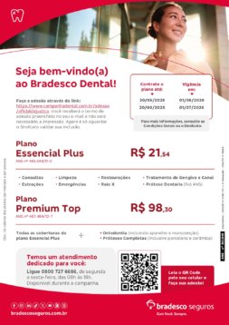 A proposta contempla duas opções de planos. O plano Essencial Plus possui valor mensal de R$ 21,54 mensais por pessoa e inclui coberturas como consultas, limpezas, restaurações, extrações, emergências, exames de raio-x, além de tratamento de gengiva, canal e prótese dentária conforme o rol da ANS.