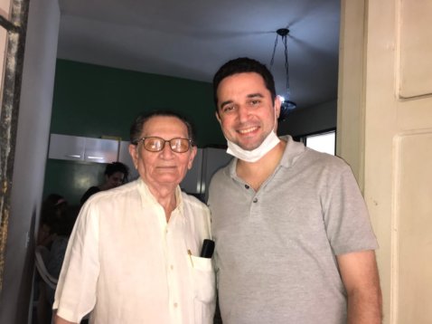 Seu Raimundo Nogueira com o filho, o Oficial de Justiça Rodrigo Nogueira. Foto: Arquivo da família